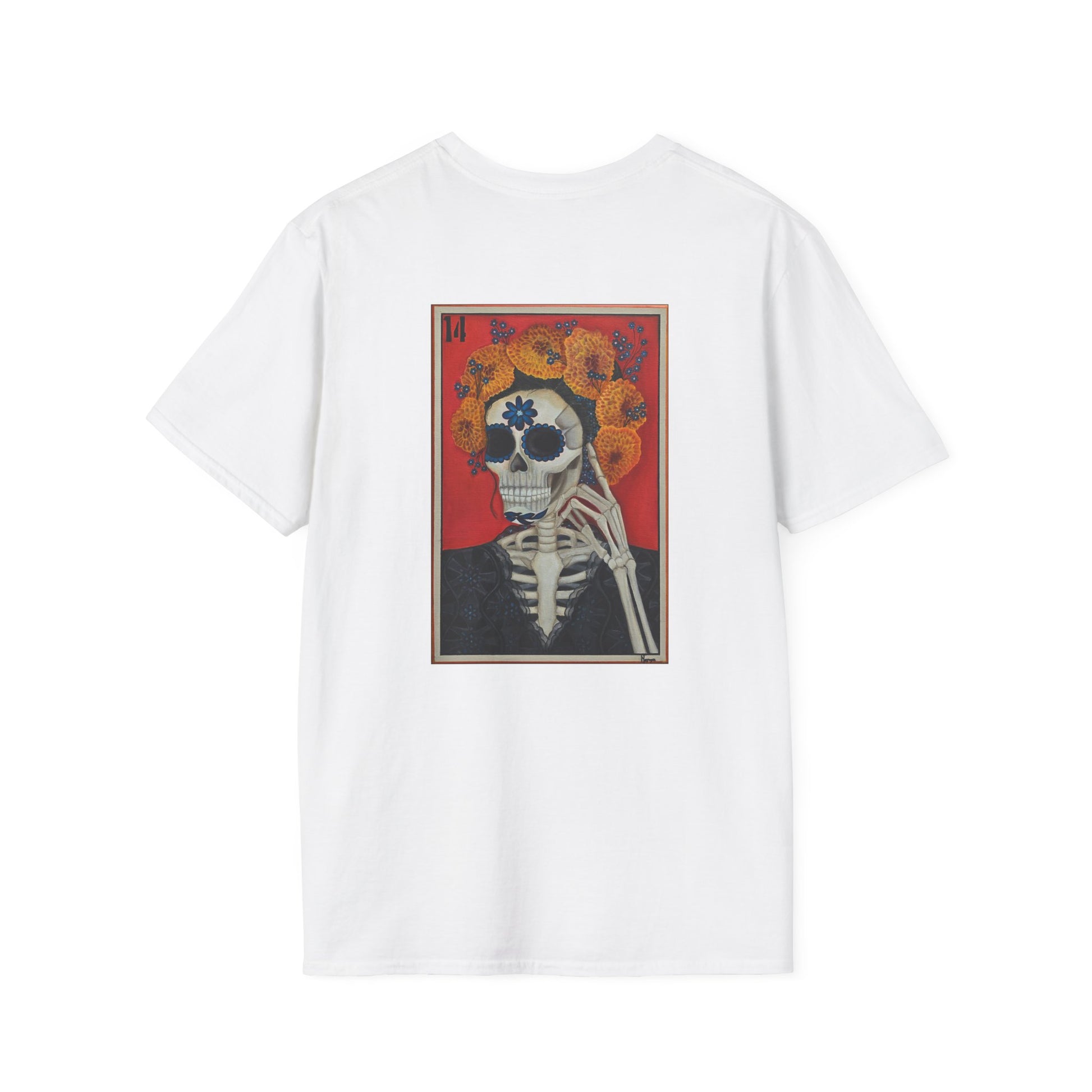Not an end, but a transformation. This bold reinterpretation of La Muete, one of the most iconic cards in the Mexican Loteria, turns the symbol of death into a reminder of rebirth and inner strength. With vibrant tones and a unique artistic style, this shirt honors tradition while embracing reinvention.