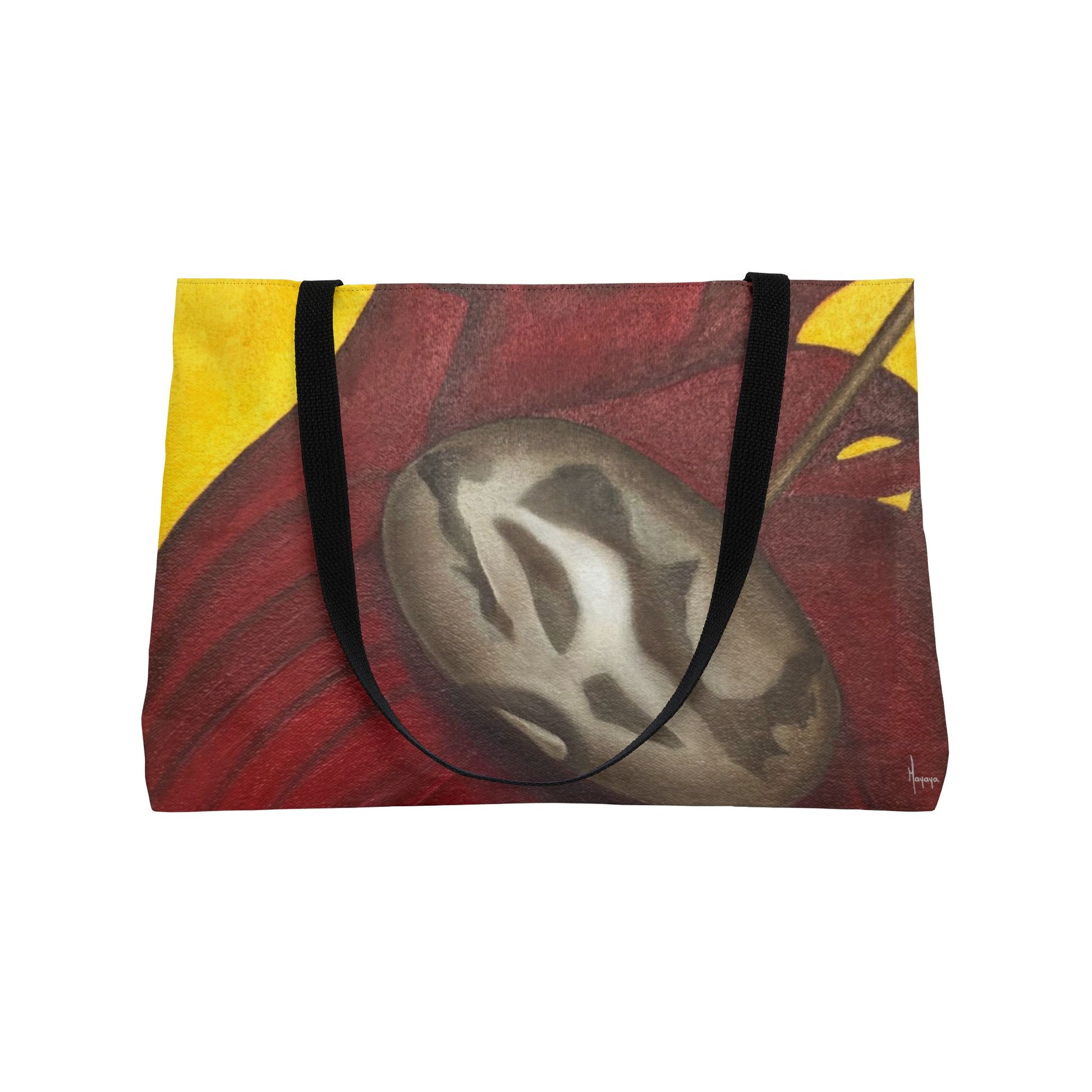 Elevate your travel experience with this stylish Weekender Tote Bag. Its vibrant colors and dynamic all-over print create an eye-catching accessory perfect for weekend getaways or trips to the gym. The spacious interior (24" x 13") ensures you have plenty of room for all your essentials. Designed with black woven handles for easy and comfortable carrying, this tote fits seamlessly into your active lifestyle. Ideal for fashion-forward individuals who enjoy expressing their unique style, this tote bag is perfect for holidays, vacations, or simply a day out. Great for gifting on occasions like birthdays and holidays, it adds a practical and chic touch to anyone's collection.